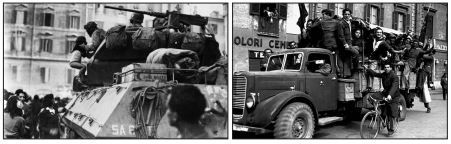 trucidato alle Ardeatine, pochi passi da casa mia, sulle Sette chiese da dove, lanciando lo sguardo lungo dal terrazzo, una calda domenica di primo giugno, li vidi arrivare, lentissimamente, loro, i salvatori portatori di libertà scatolette boogie-woogie e gazzarre notturne.
