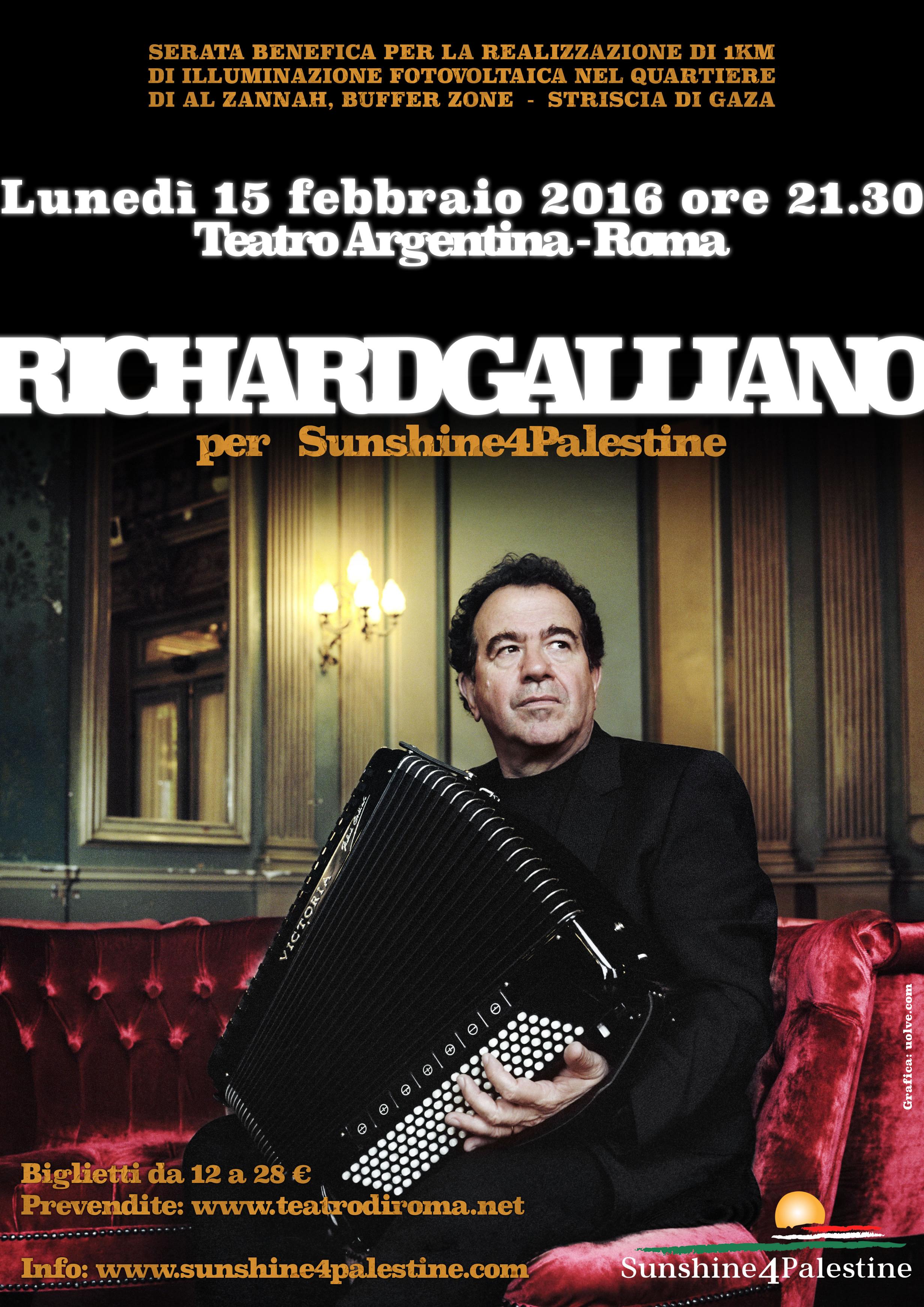 Sunshine4Palestine ti invita lunedì 15 Febbraio 2016, alle ore 21.30, al concerto del grande artista francese