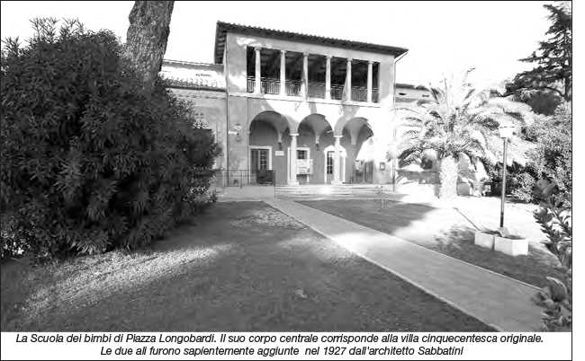 Chi lo direbbe che l’asilo infantile della Garbatella – cioè la Scuola dei bimbi, la “Scoletta” di Piazza Nicola Longobardi – in origine fosse stato una rinascimentale raffinata villa di campagna. L’edificio infatti fu eretto nel primo ventennio del 1500 per il piacere di un nobile senese. La costruzione fu certo progettata da un artista di cui non ci è pervenuto il nome, ma che non dovrebbe essere distante dalle scuole di architettura di Raffaello o di Baldassarre Peruzzi operanti a Roma negli anni che precedettero il terribile “sacco” dei Lanzichenecchi del 1527. …..