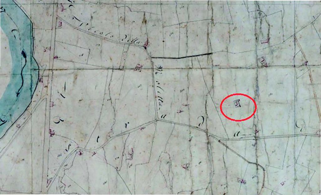 L’EDIFICIO RURALE APPARTENEVA ALLA TENUTA DEI 12 CANCELLI DI MONSIGNOR NICOLAI. ACCATASTATO GIÀ NEL 1818.