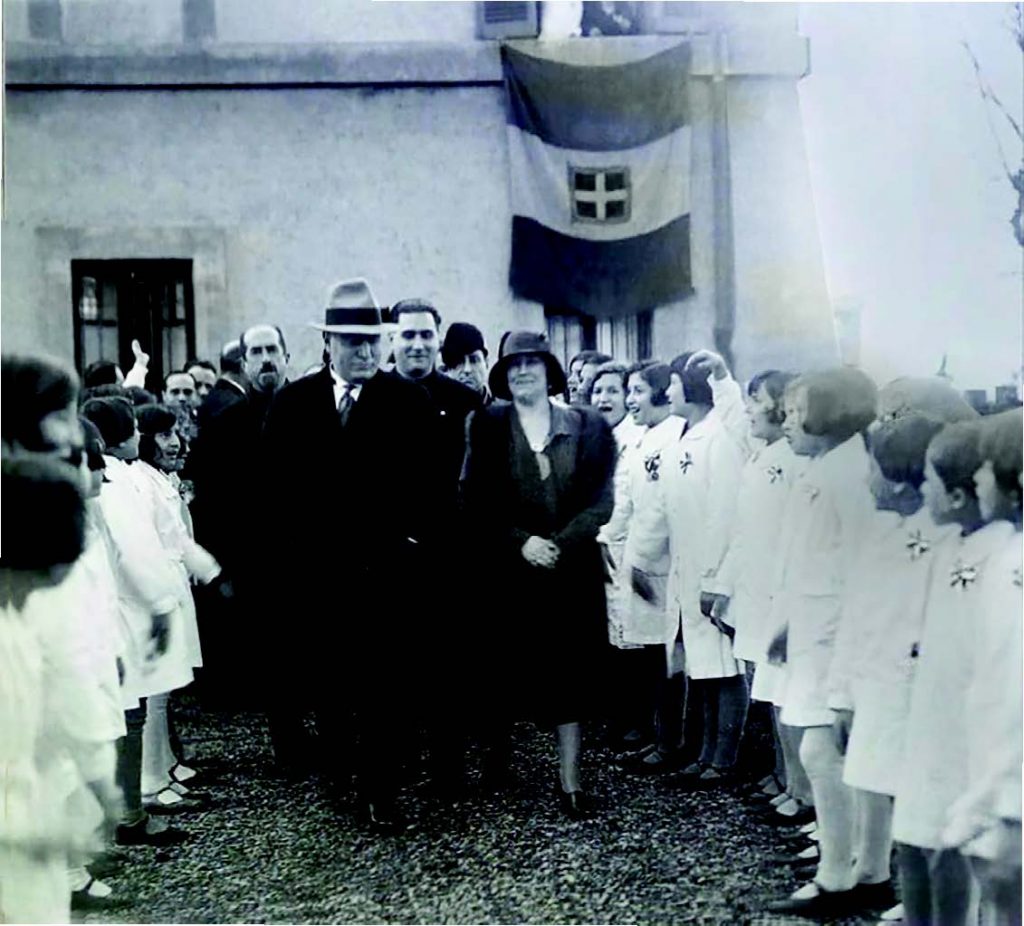 Benito Mussolini esce, dal cortile della sede del gruppo femminile fascista di via Passino 26, 6 gennaio 1931