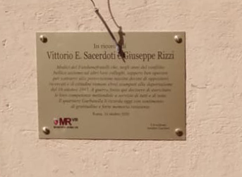 Vittorio Emanuele Sacerdoti e Giuseppe Rizzi: due medici che sono rimasti nel cuore degli abitanti della Garbatella.Oggi,nel 77° anniversario della deportazione degli ebrei dal ghetto di Roma, è stata scoperta una targa alla loro memoria. Alla manifestazione che si è tenuta in via Roberto de Nobili 11, dove negli anni Cinquanta il dottor Sacerdoti aprì uno studio medico, hanno partecipato Massimo Finzi delegato alla memoria della comunità ebraica di Roma, Amedeo Ciaccheri presidente dell’VIII municipio, l’assessora Michela Cicculli e alcune famiglie ebraiche del quartiere. Proprio da Settimio Limentani e da Rina Perugia sono state raccontate le storie più commoventi di quei terribili giorni dell’ottobre del 1943 e la grande solidarietà degli abitanti della Garbatella, che li hanno nascosti, sostenuti e sfamati durante i nove mesi di occupazione nazista della città. Ma chi era Vittorio Sacerdoti?Era un medico di religione ebraica che esercitava nel nosocomio di Ancona.A seguito delle leggi razziali fu espulso dall’ospedale e dovette rinunciare alla professione.