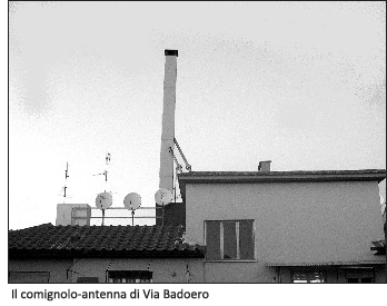 Un’antenna Umts è spuntata nella notte sul tetto d’un condominio di via Badoero. Un gruppo di cittadini riunitosi spontaneamente, a seguito di questa scoperta, si chiedeva perplesso, il motivo dell’occultamento di questa potente fonte di emissione di onde radio, all’interno di un comignolo finto, alto una decina di metri. La richiesta di una maggiore attenzione alla qualità della vita e il “no” alla logica del profitto sulla pelle delle persone: questi i temi esposti sul volantino distribuito tra la gente per sensibilizzare ed informare la popolazione sui rischi di una ulteriore accelerazione della installazione di questi emettitori, con il sistema del silenzio assenso. Chi tace acconsente, in sostanza. …..