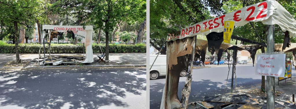 Il gazebo, affittato al presidio sanitario da un proprietario privato, ha la copertura assicurativa contro questo tipo di danni; lo stesso proprietario della struttura si è rivolto a Federfarma per la denuncia dell’accaduto. I titolari della Sant’Anna contano di avere per la settimana prossima una nuova struttura più solida, tipo container che sarà installata sul marciapiede proprio di fronte ai locali. Piena solidarietà agli operatori sanitari di zona che continuano a erogare questo importante servizio con discrezione e perseveranza.
