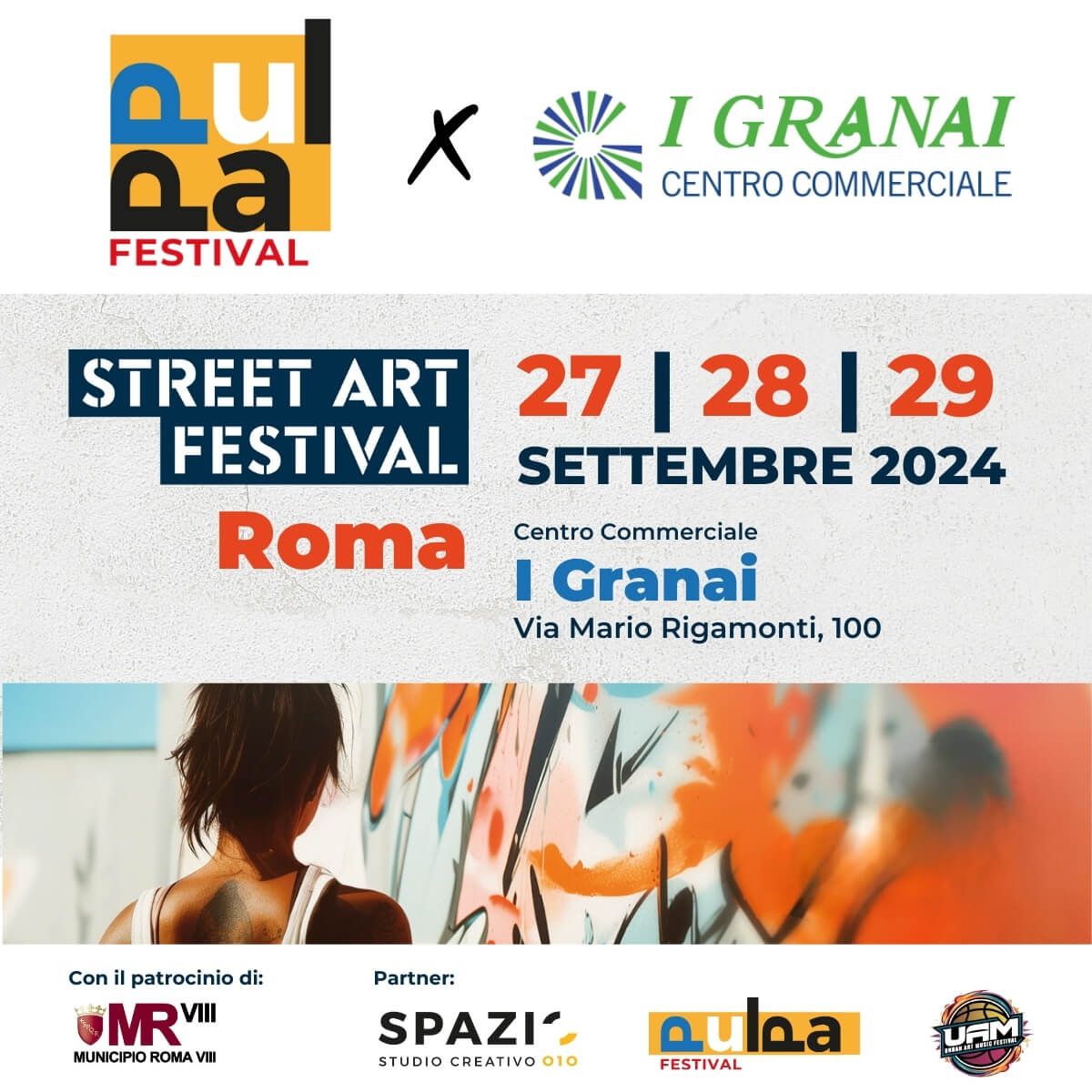 Ecco cosa è Pulpa, è linfa vitale che sprigiona dalle immagini di Street Art, stavolta dipinte sulle pareti esterne del Centro Commerciale I Granai, a Roma 70, grazie al Progetto UAM – Urban Art Music Festival.
