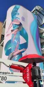 Ginevra Giovannoni, in arte, Rame 13 spiega che il suo murale vuole essere un omaggio alle donne del Wind Surf, “disciplina che è molto più di una semplice attività fisica perché incarna la bellezza della natura e la sfida della tecnica. È una via per connettersi con il mare, superare le avversità e scoprire il proprio potenziale. E negli ultimi decenni, il Surf ha visto una crescente partecipazione femminile.”