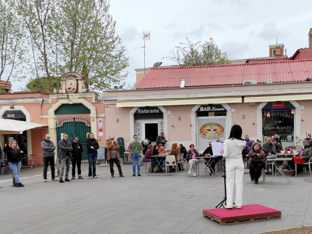E sulla scelta delle piazze dichiara: “Ringraziamo l’VIII Municipio ed in particolare Amedeo Ciaccheri per la sua immediata adesione ma anche tutti gli abitanti di Garbatella che sono accorsi numerosi”. I quattro artisti si erano già esibiti a Tormarancia e proseguivano per piazza Trilussa, dove poi hanno concluso la loro performance.