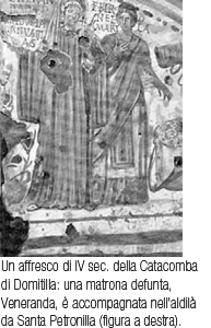 Petronilla, cioè figlia di un Pietro. L’eccesso di zelo dei credenti e probabilmente una non del tutto disinteressata caccia alle reliquie dei cristiani della prima ora portarono a concludere che quella Petronilla fosse proprio una figlia di San Pietro. Chi sa, poteva essere stato lo stesso padre a scolpire quella pietosa epigrafe. Ma una figlia di Pietro non poteva che essere martire, come il padre. E come martire venne venerata, pur apparendo assai improbabile che un settore del III o IV secolo del cimitero di Domitilla potesse mai aver accolto le spoglie di una figlia di Pietro che, se mai fosse esistita, doveva essere morta almeno duecento anni prima. Poteva però esserci stata una traslazione, ma di questa sarebbe rimasta memoria.