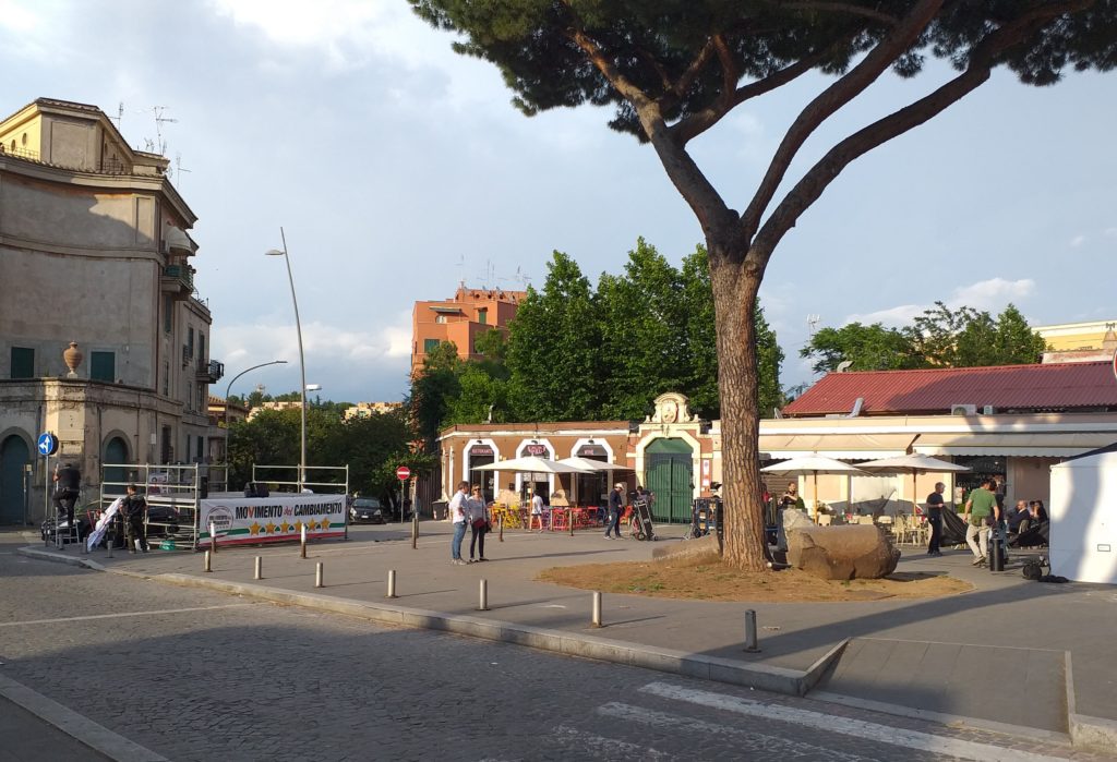 Il set di un comizio elettorale è stato allestito a Piazza Sant’Eurosia.