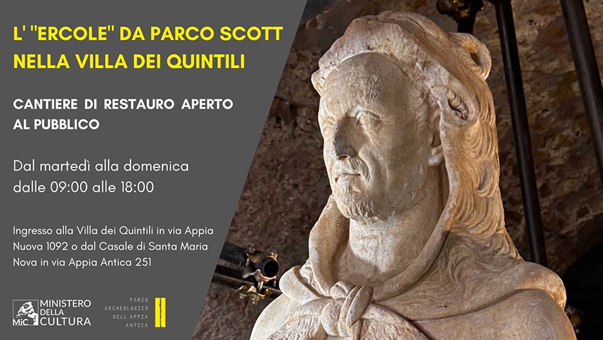 Dopo un primo restauro e pulizia a cura dell’ente del Parco Archeologico dell’Appia Antica, la statua dell’Ercole di Parco Scott è già visibile al pubblico.