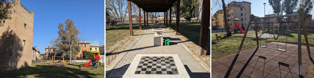 Nuovi arredi urbani, nuove altalene, una nuova staccionata e soprattutto la sostituzione del campo da bocce con tavoli di legno e due postazioni in cemento predisposte per il gioco degli scacchi. Oltre all’area verde e a quella ludica, anche le mura dell’antica torre medievale sono state ripulite.