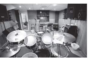 Le due sale presenti all’interno, perfettamente insonorizzate, consentono alle giovani band di suonare utilizzando tutto il materiale necessario e permettono di svolgere le lezioni di musica in un ambiente comodo e confortevole.
