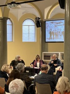 La dottoressa Anna Lo Bianco, già direttrice della Galleria di Arte Antica – Palazzo Barberini, ora in pensione, ha invece dedicato un accurato studio al dipinto in questione e alla sua storia. “La Pala si trovava in origine nella chiesa di Santa Galla che risaliva al secolo XVII e sorgeva alle pendici del Campidoglio – racconta la Lo Bianco – .La chiesa fu poi demolita nel 1935 durante la campagna di sventramenti del periodo fascista. Il dipinto celebra la figura della patrizia romana Galla, nata nei primi del 500 d.c. in una nobile famiglia. Dopo essere rimasta vedova giovanissima si era voluta dedicare all’assistenza ai numerosi poveri del quartiere, ispirando grande devozione tra il popolo romano. Nel dipinto viene narrato l’episodio miracoloso che la vide protagonista, ovvero l’apparizione, mentre serviva alla mensa dei poveri, di un angelo che offre al Papa Giovanni I l’immagine miracolosa della Vergine”.